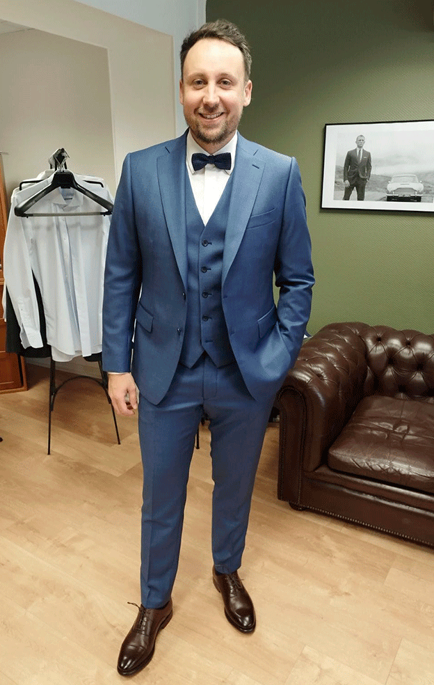 La pièce finale est finie, repassée et prête à être portée. Une confection qui vous va bien. Pour entretenir votre costume, suspendez-le à l’air libre et évitez le nettoyage à sec excessif. Vos mesures sont enregistrées : vous pouvez commander à tout moment une nouvelle pièce.